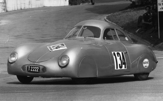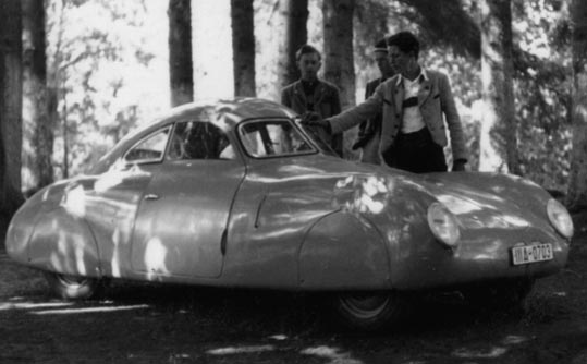 Three streamlined two-seaters were constructed and built by Ferdinand Porsche from Volkswagen parts for a proposed race from Berlin to Rome in 1938 - 39. There were lots of revolutionary features: to make it as streamlined as possible the wheels were enclosed giving lower drag even than the post-war Porsche 356 and plastic windows were used to save weight. The Porsche Typ 64 is very clean, aerodynamically, with no protuberances for bumpers, windows etc. The bodywork was contracted out to the Stuttgart firm of Reutter, experienced in forming beautiful shapes out of aluminium which was chosen to save weight. Larger valves were fitted and compression raised.The race never came about.